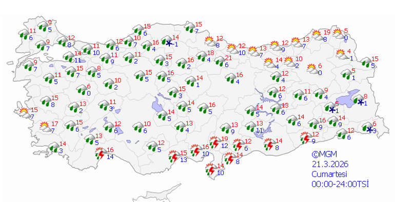 21 Mart Cumartesi: Çok bulutlu, aralıklı yağmurlu