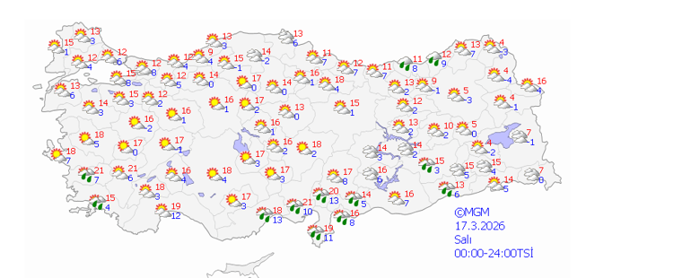 17 Mart Salı: Sabah sisli ve puslu, parçalı ve az bulutlu