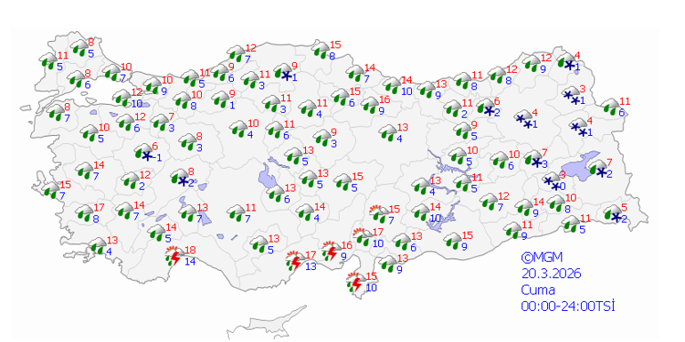 20 Mart Cuma: Çok bulutlu, sağanak yağmurlu