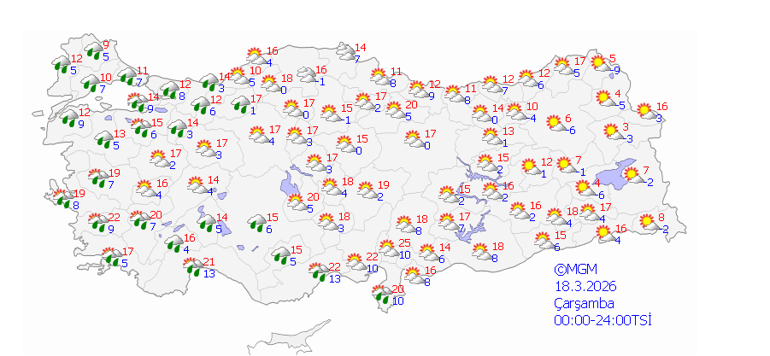 18 Mart Çarşamba: Parçalı ve çok bulutlu